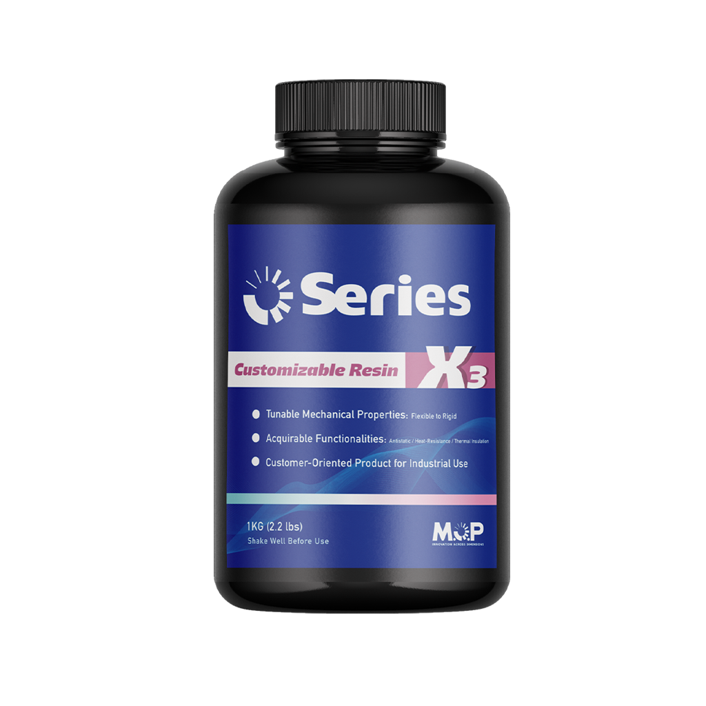 Series-X₃는 고객의 니즈에 따라 유연한(Flexible) 소재부터 높은 인성(Stiff)의 소재까지 폭넓게 대응할 수 있는 고객 맞춤형 레진입니다. 또한 필요 시 대전 방지·내열·단열 등의 특수 기능도 적용할 수 있어, 다양한 산업 분야의 고유한 조건을 만족하는 솔루션으로 활용 가능합니다. SLA·DLP·LCD 등 일반적인 3D 프린터에서 사용 가능합니다.